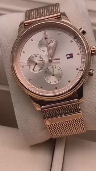 Este reloj para mujer de la línea Blake de Tommy Hilfiger destaca por su diseño elegante, moderno y femenino. Combina una estética refinada con funciones prácticas, ideal tanto para el día a día como para complementar un look más formal.